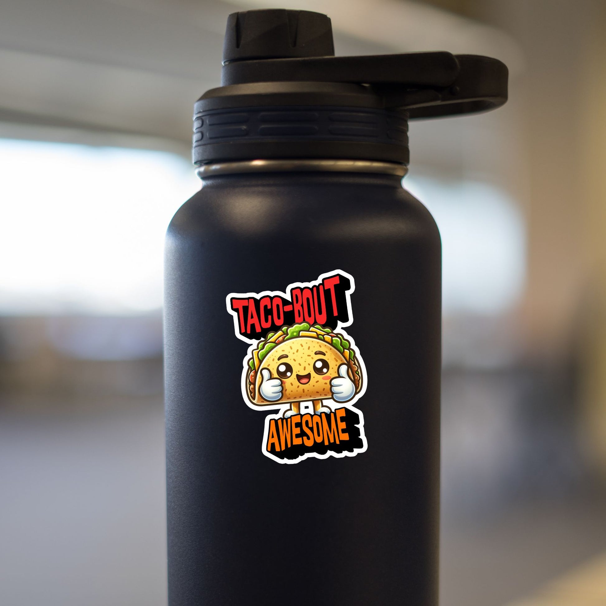 Bring a smile wherever you stick it with this *Taco-bout Awesome* sticker! Featuring a cheerful cartoon taco giving a thumbs up, this funny design is perfect for taco lovers, pun fans, and anyone who enjoys a little humor in their day.